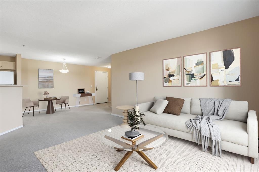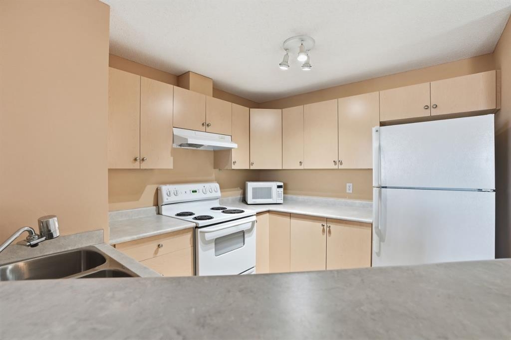 -NEW PRICE-Welcome to this well-maintained 2-bedroom condo located on the 3rd floor of a highly sought-after and professionally managed complex "The Pointe at Prestwick". Offering 840 sq. ft. of bright ,open living space, this unit features a smart layout with two generously sized bedrooms separated by a spacious living room. Enjoy the morning sun with an east-facing exposure that fills the space with natural light. Additional features include in-suite laundry, underground titled parking and a condo fee that covers all utilities including electricity, giving you peace of mind and true hassle-free living. Conveniently located near shopping, schools, and other key amenities, this condo is perfect for first-time buyers, downsizers, or investors looking for a solid property in a fantastic location!